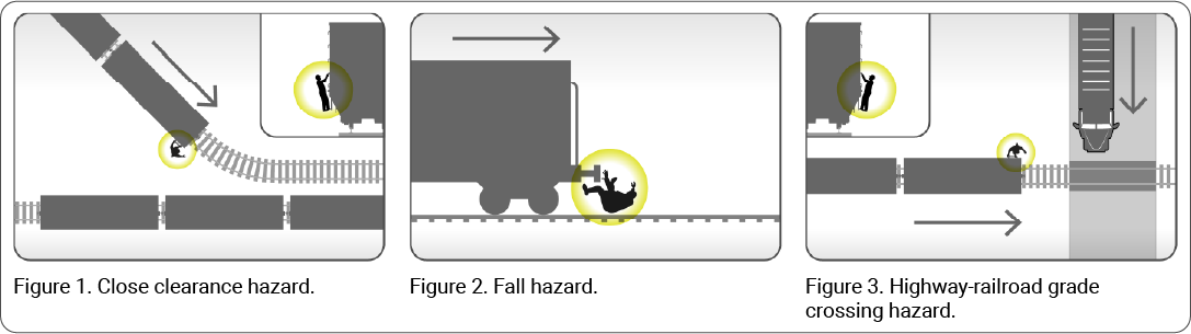 - When positioned on lead railcars, conductors can fall into a train’s path, and some railcars increase this risk by not enabling secure riding positions. (See figure 2.)
