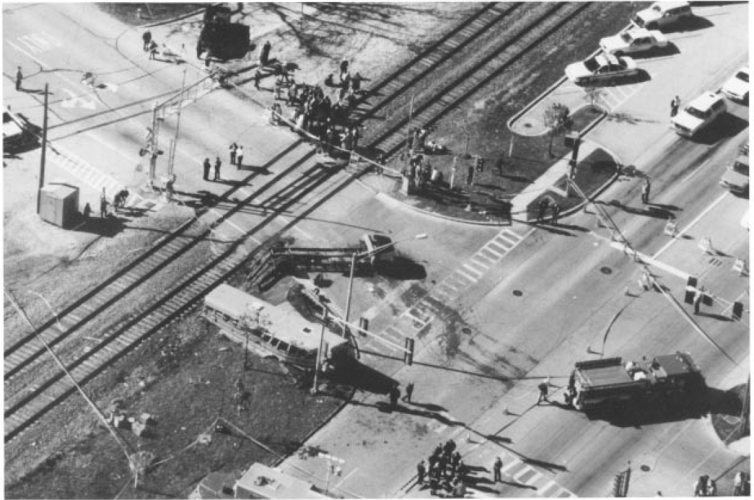 On October 25, 1995, at 7:10 a.m., the Northeast Illinois Regional Commuter Railroad Corporation (d/b/a Metropolitan Rail) express commuter train 624 struck the rear left side of a stopped Transportation Joint Agreement School District 47/155 school bus at a railroad/highway grade crossing in Fox River Grove, Illinois. The accident occurred after the school bus had crossed the railroad tracks and stopped for a red traffic signal, with its rear extended about 3 feet into the path of the train. Of the 35 school bus passengers, 7, 24, and 4 passengers sustained fatal, serious to minor, and no injuries, respectively; the busdriver received minor injuries. The 120 passengers and 3 crewmembers aboard the commuter train were uninjured.