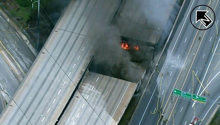 On Thursday, March 30, 2017, about 6:05 p.m., construction materials stored under an Interstate 85 (I-85) overpass in Atlanta, Georgia, were set on fire. The fire propagated throughout the storage area. Just over 1 hour later, at 7:14 p.m., span 30 NB—a 92-foot-long elevated span of I-85—collapsed. No fatalities or injuries were reported from the fire and subsequent bridge collapse. One person was arrested and later charged with criminal damage to property. The Georgia Department of Transportation (GDOT) had been using the area as storage for 76 reels of high-density polyethylene conduit and nine racks of fiberglass conduit. The materials were left over from an earlier project on State Route 400 (SR-400) and were secured inside a chain-link fence.